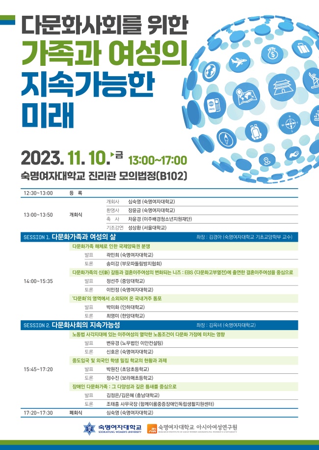 [학술대회] 다문화사회를 위한 가족과 여성의 지속가능한 미래