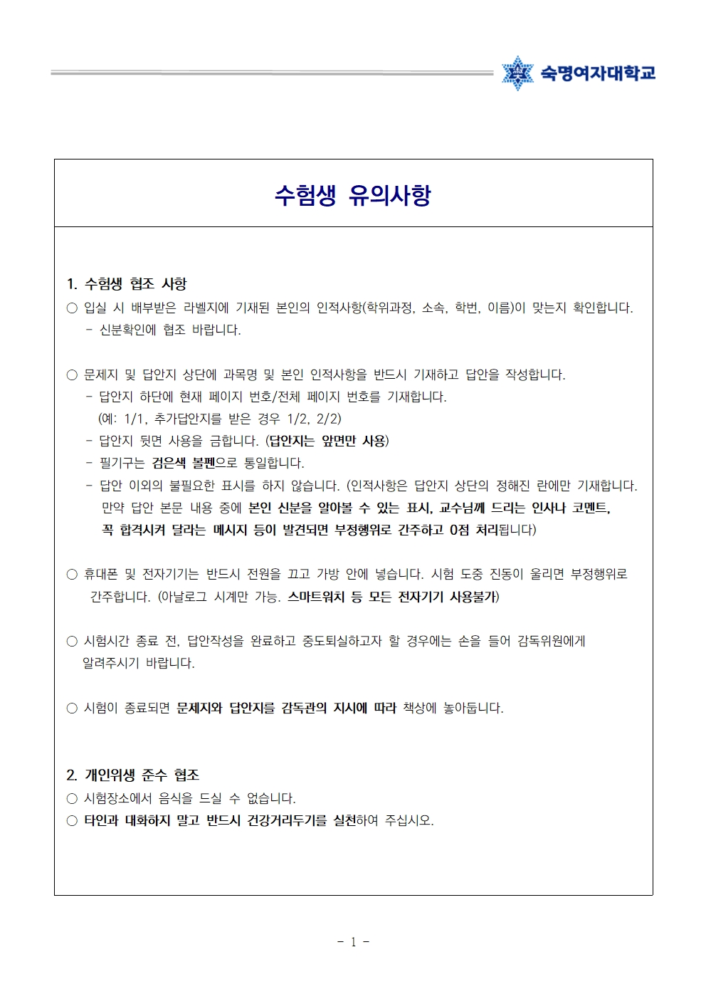 붙임: 1. 2024-2 특수대학원 학위자격시험 응시생 유의사항