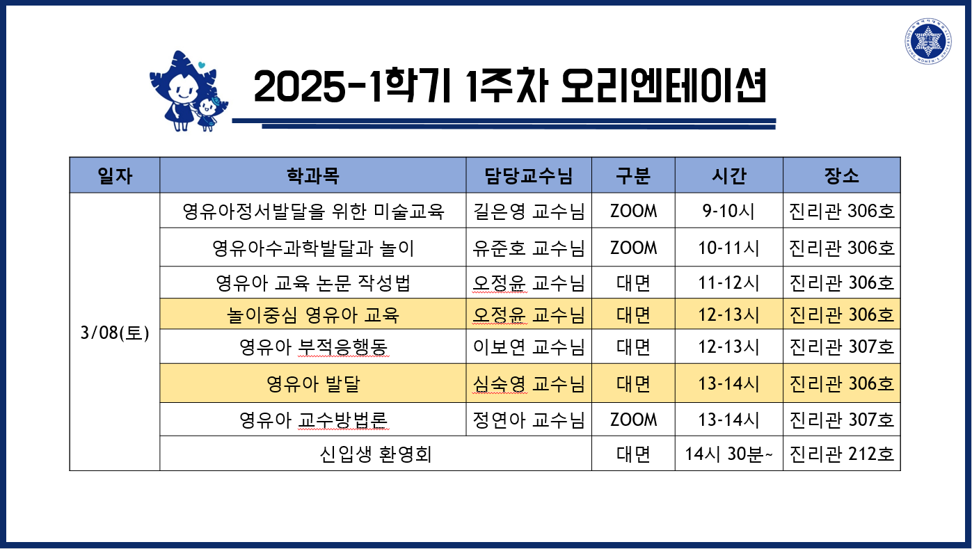 2025-1학기 1주차 수업(OT) / 신입생 환영회 안내