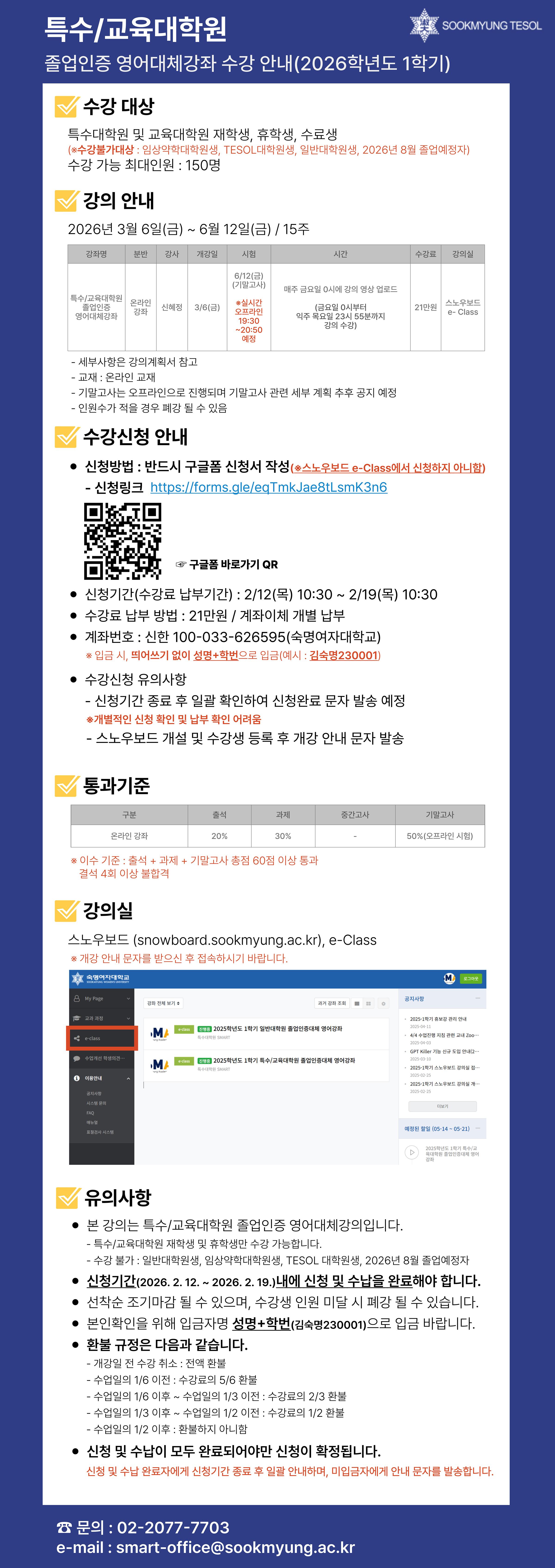 2026-1학기 특수대학원 졸업인증 영어대체강좌 수강신청 안내